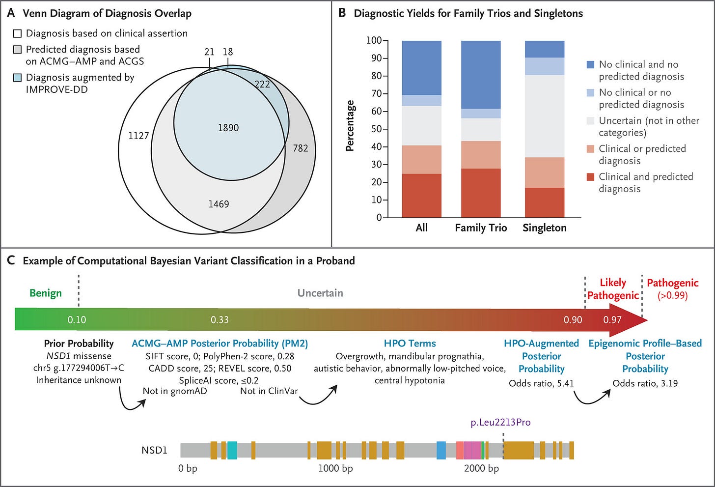 Of the 13,449 participants whose data were analyzed, a diagnosis was made in approximately 41% of patients. Of those diagnoses, 76% were pathogenic de novo, meaning they were causative genetic variants that were not inherited from the patients’ parents.