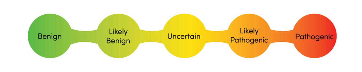 What are the different classifications for genetic variants?